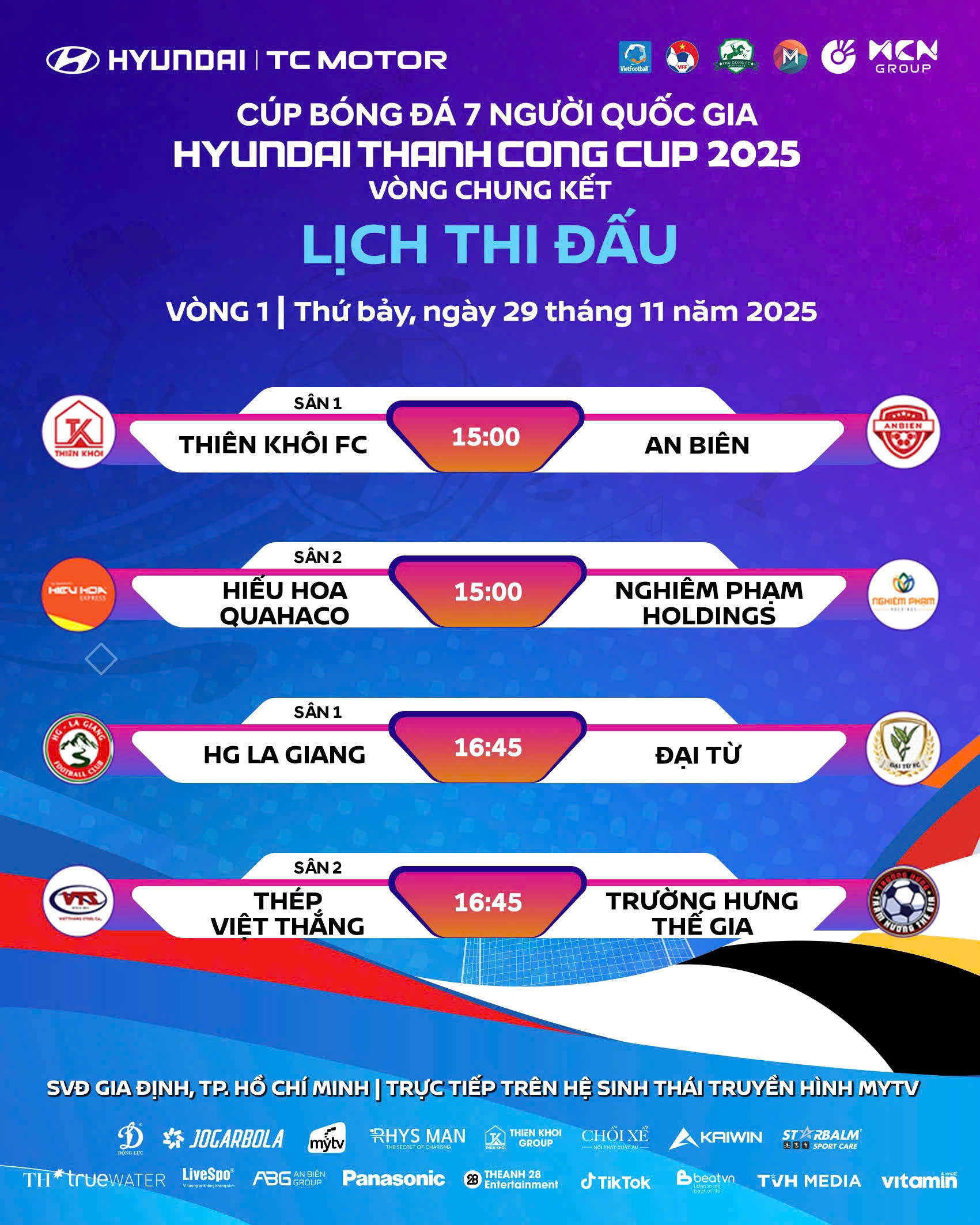 Câu 1: Anh đánh giá như thế nào về 2 bảng đấu vòng chung kết Cúp Bóng đá 7 người Quốc gia Hyundai Thành Công Cup 2025?