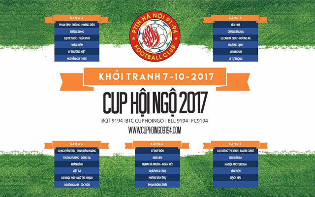 Hàng vạn cổ động viên các cựu học sinh PTTH Hà Nội niên khóa 1991-1994 đang háo hức chờ đợi ngày khai mạc giải Bóng đá Cúp Hội Ngộ 2017 sẽ diễn ra vào 13h ngày 07/10/2017 trên sân VSA số 5 Lê Trọng Tấn.
